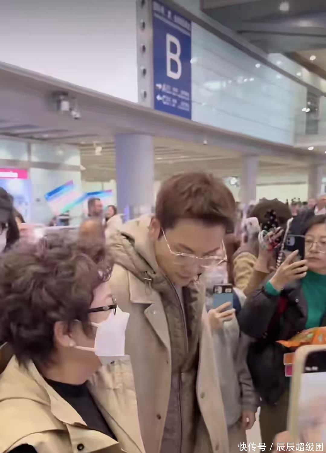 可以看到机场真的好多人,陈伟霆这人气很高,他妈妈真不愧是香港人,对着那么多手机怼着自己拍也完全没有负担。